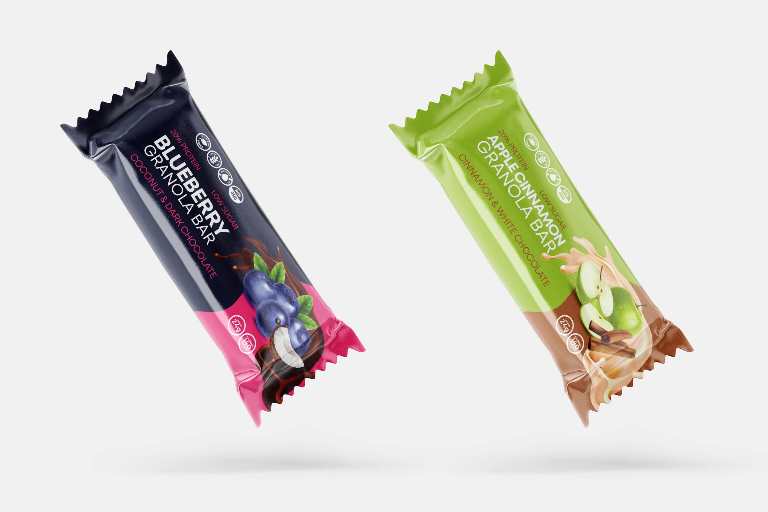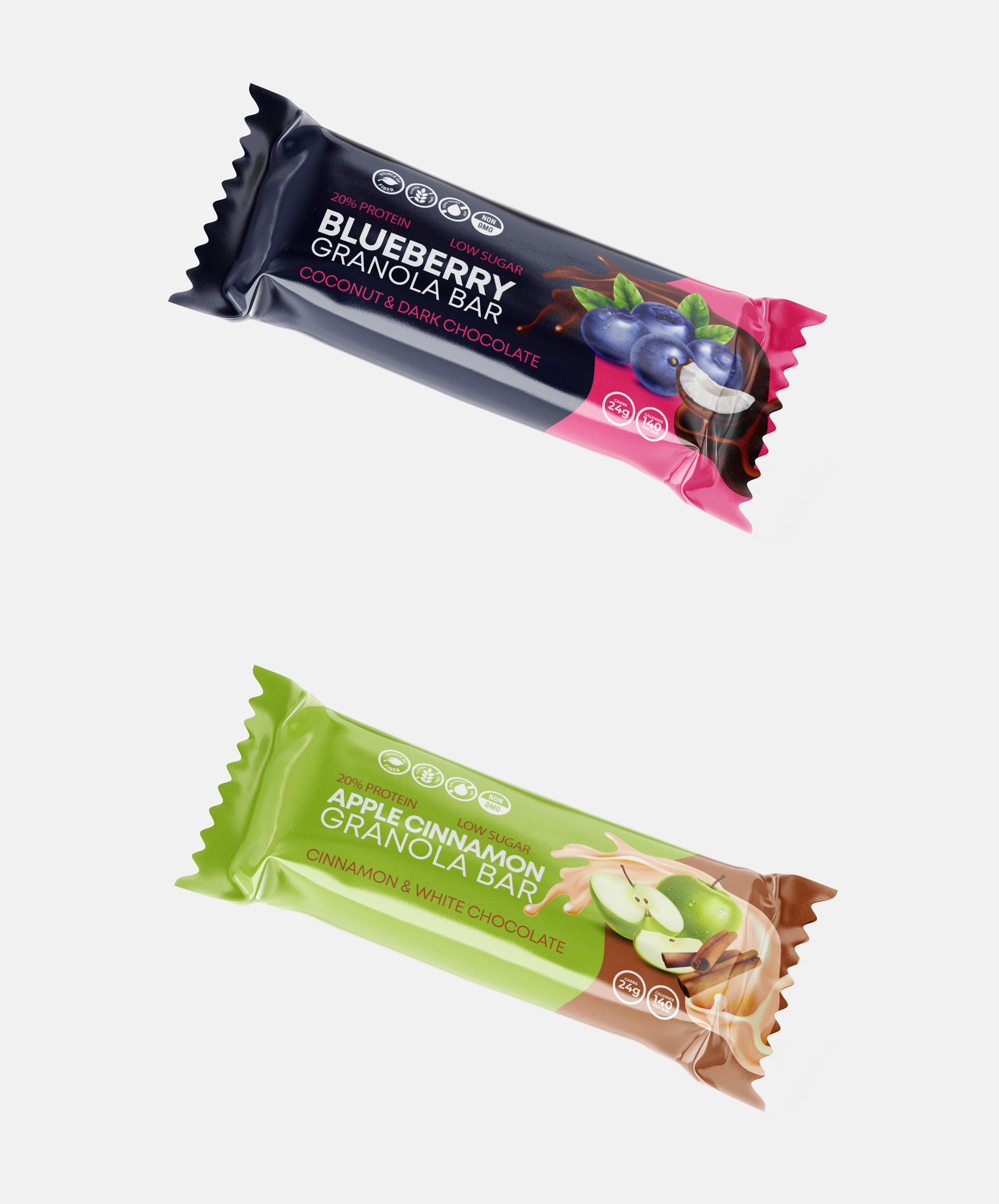 Packaging design for a range of healthy granola bars with 2 different flavours for the brand HealthFit