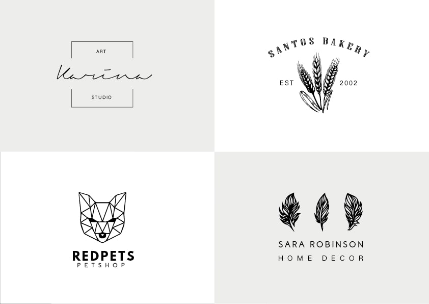 A collection of 4 different logos that were made for different clients but all inspired in the same style, Minimalist, Scandinavian and Vintage.