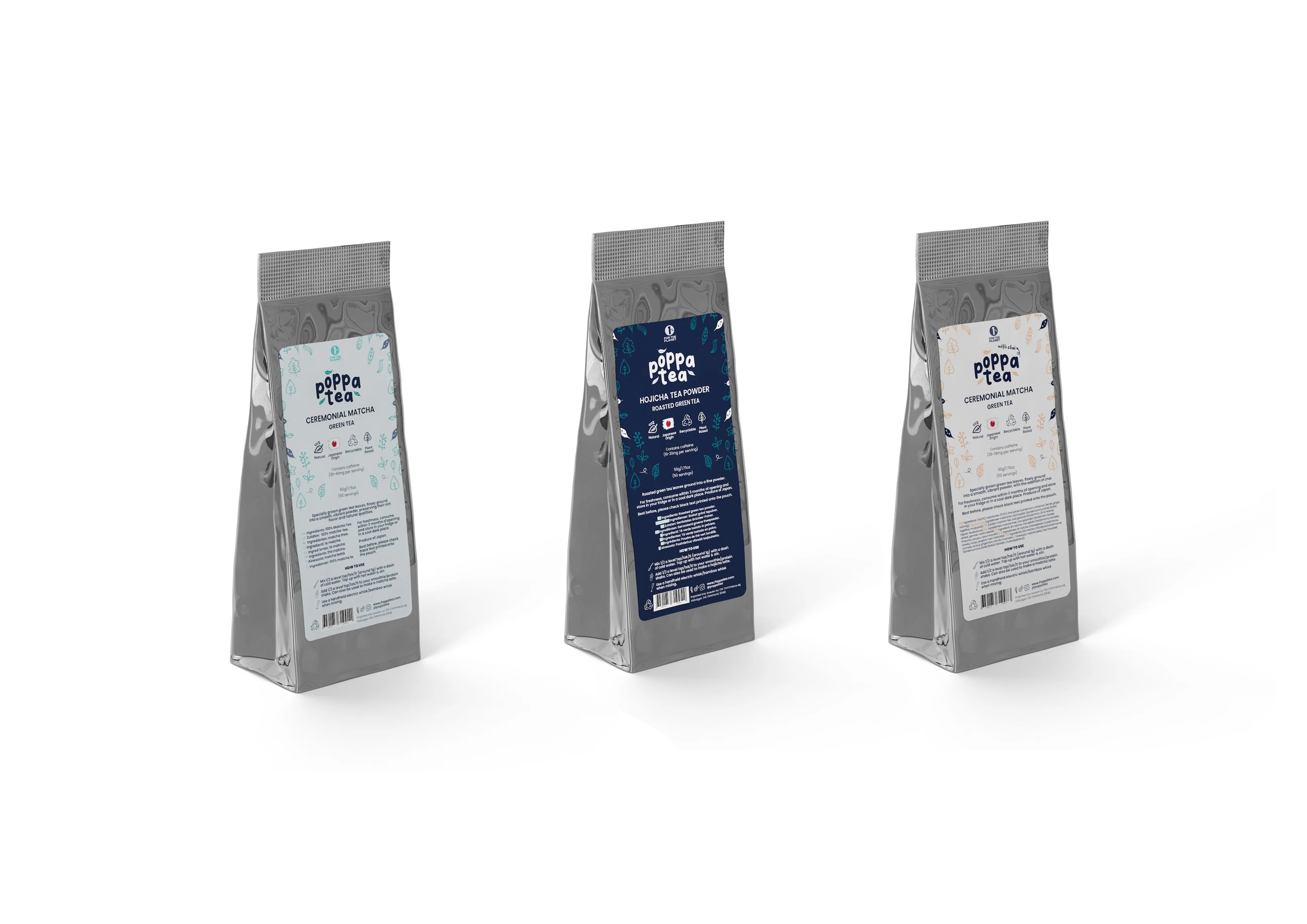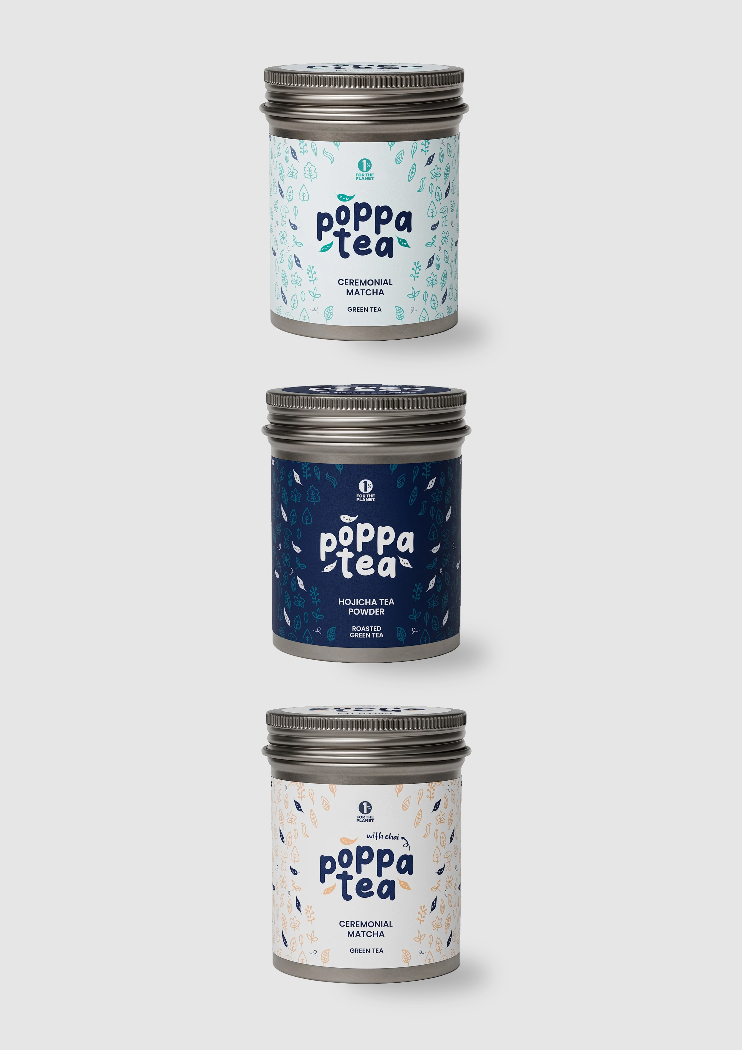 A whole brand identity development for a green tea brand called Poppatea. From Logo to Packaging.
